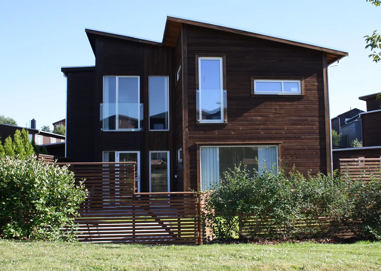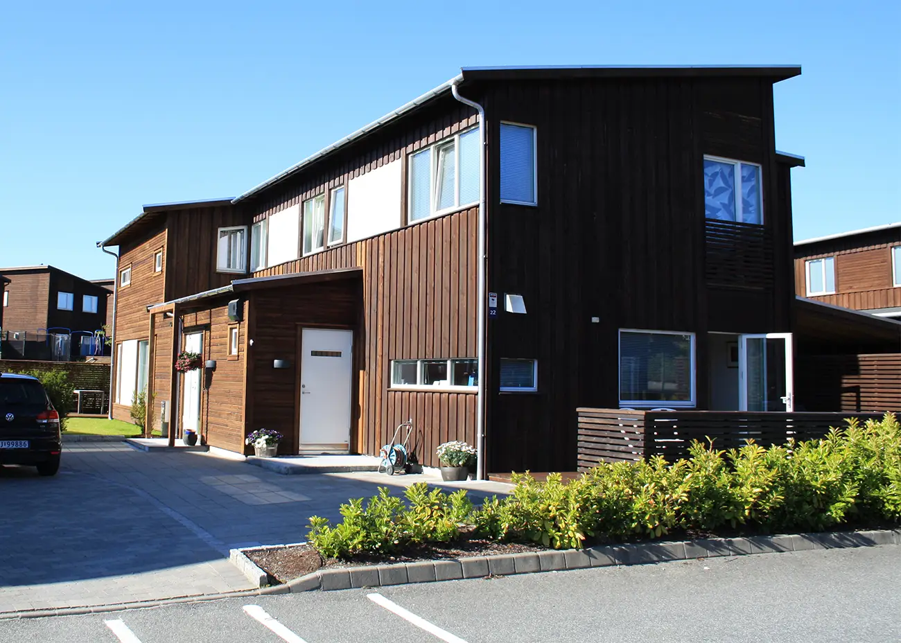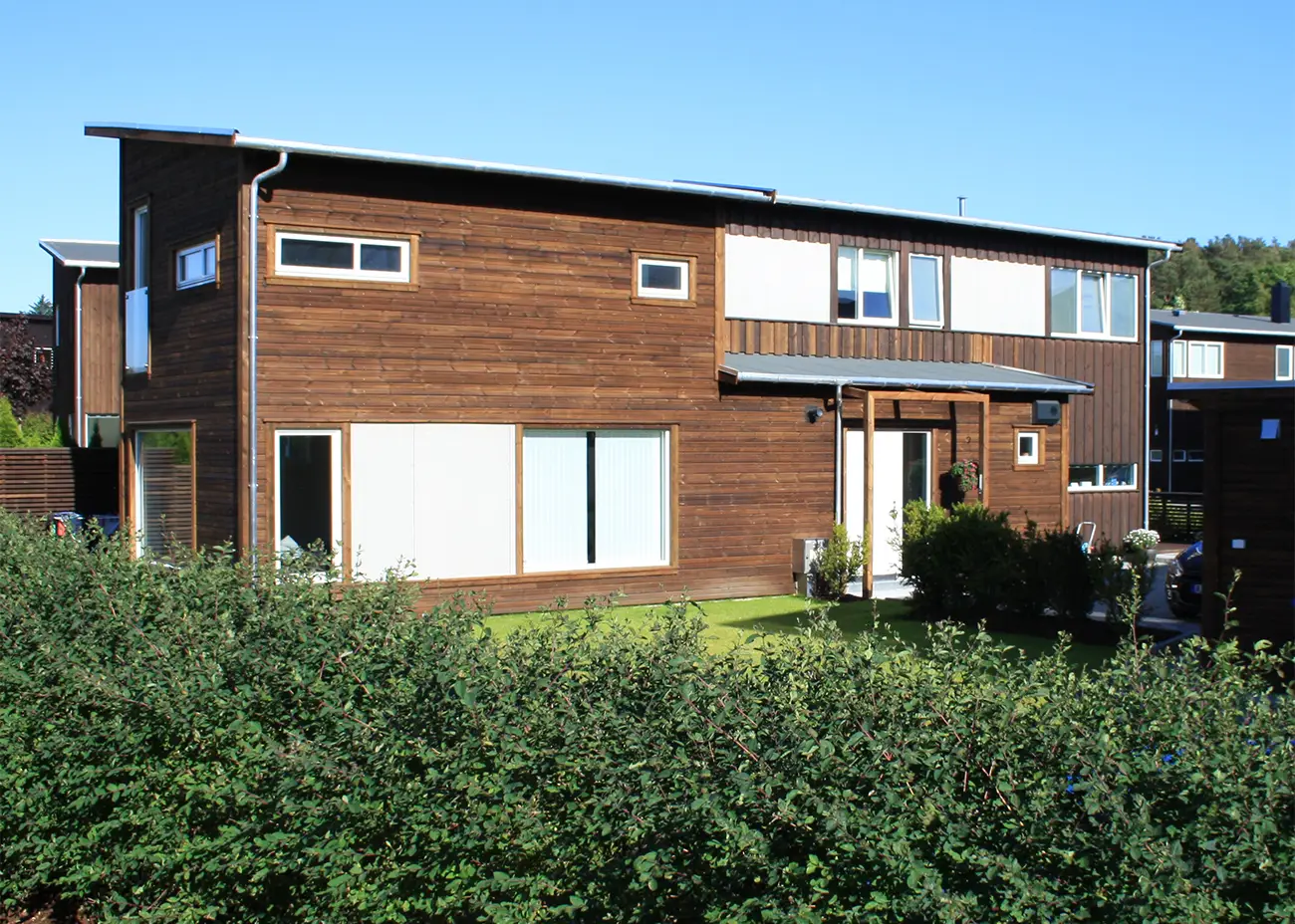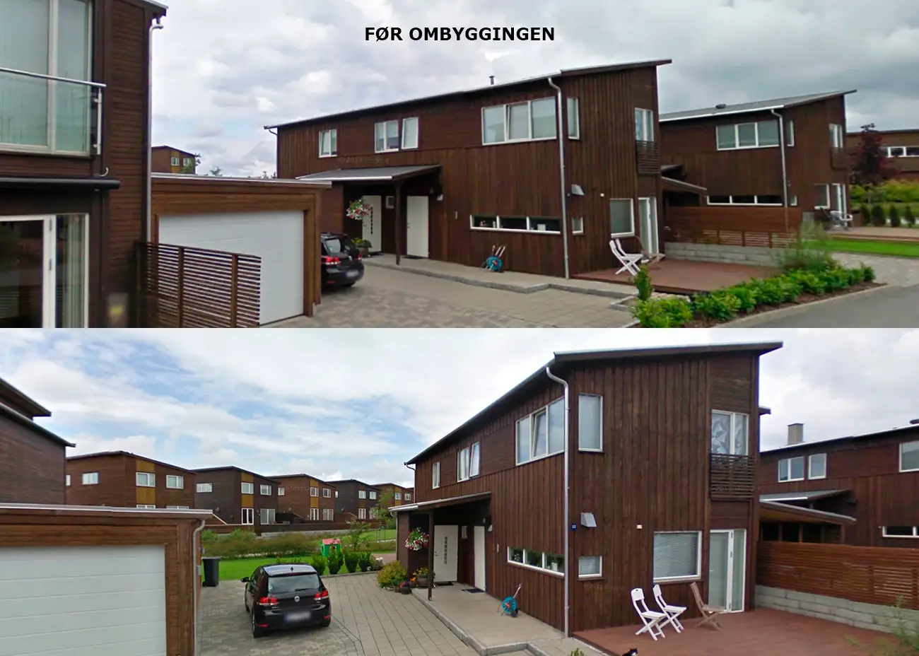 Et nytt tilbygg er plassert på vestsiden av den eksisterende boligen med tilsvarende fasadeuttrykk. Dermed ble det plass til en ny tv-stue i 1.etasje og to nye soverom i 2.etasje. Tilbygget er også godt tilpasset de omkringliggende boligene.